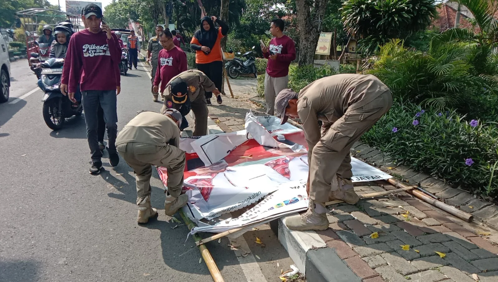 Bangkalan – Badan Pengawas Pemilu (Bawaslu) Kabupaten Bangkalan melakukan penertiban Alat Peraga Kampanye (APK) yang dinilai melanggar aturan pada tahapan kampanye pemilihan Kepala Daerah.