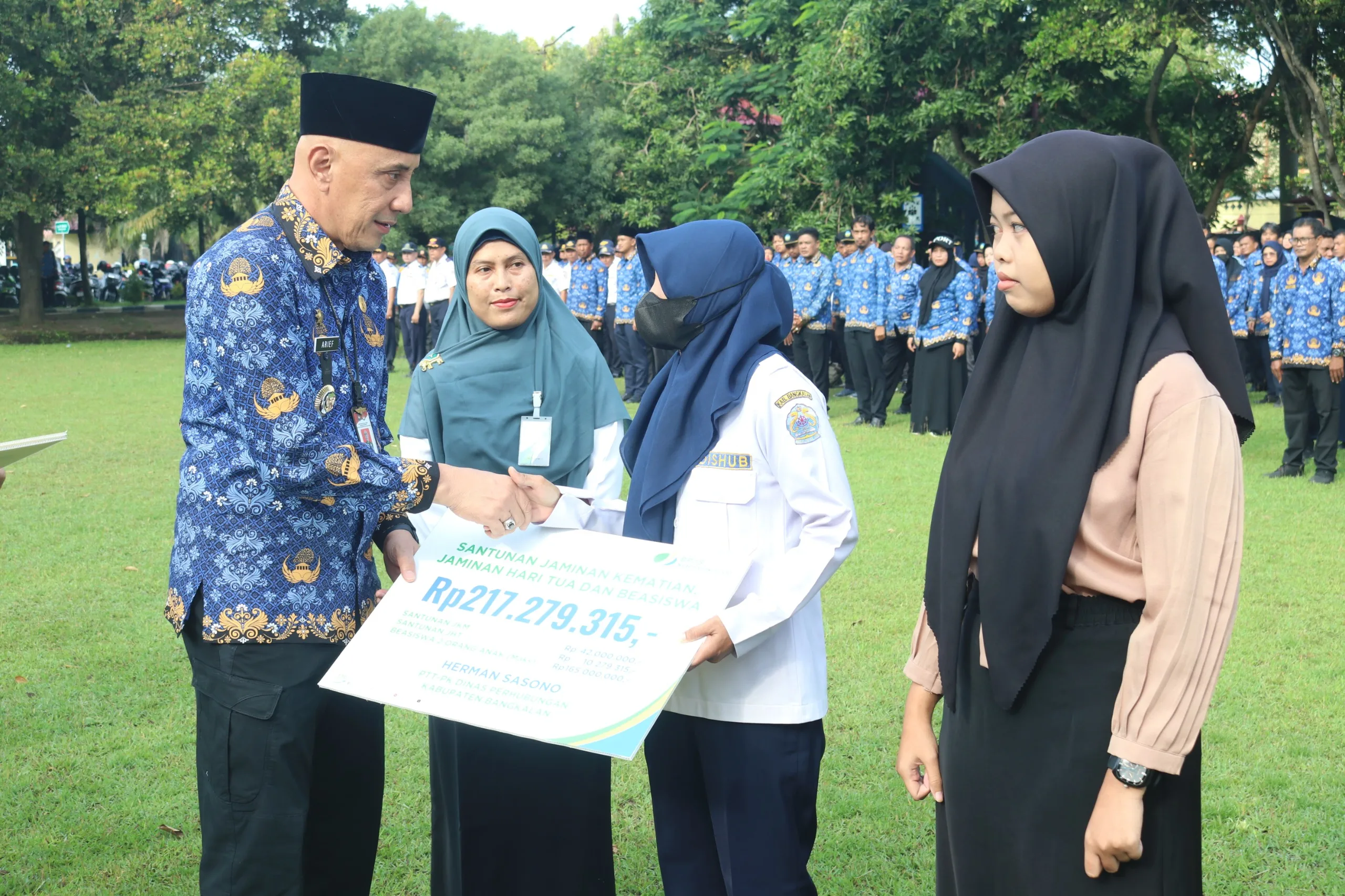 Penyerahan santunan ini juga menjadi bukti nyata komitmen Pemerintah Kabupaten Bangkalan dalam memberikan perlindungan bagi tenaga non-ASN yang diangkat menjadi Pegawai Tidak Tetap Dengan Perjanjian Kerja (PTT-PK).