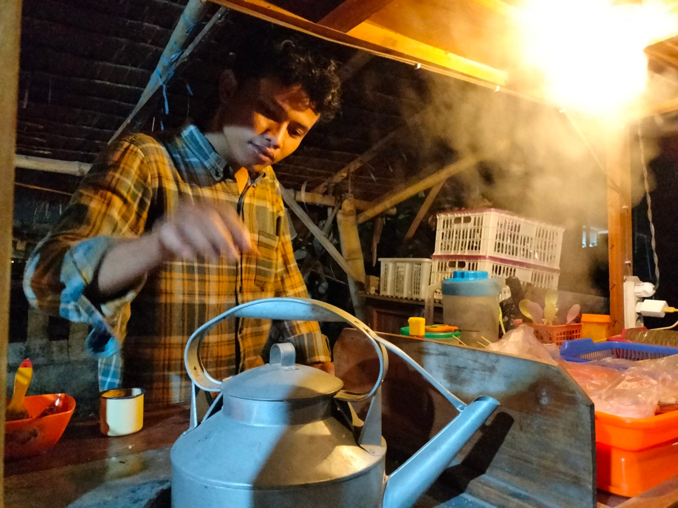 Bangkalan – Sinwani, Pemuda kelahiran tahun 2001, menjalani kesehariannya sebagai penjaga angkringan kecil di sebrang jalan pintu gerbang Polres Bangkalan, tepatnya di sebelah selatan Taman Makam Pahlawan.