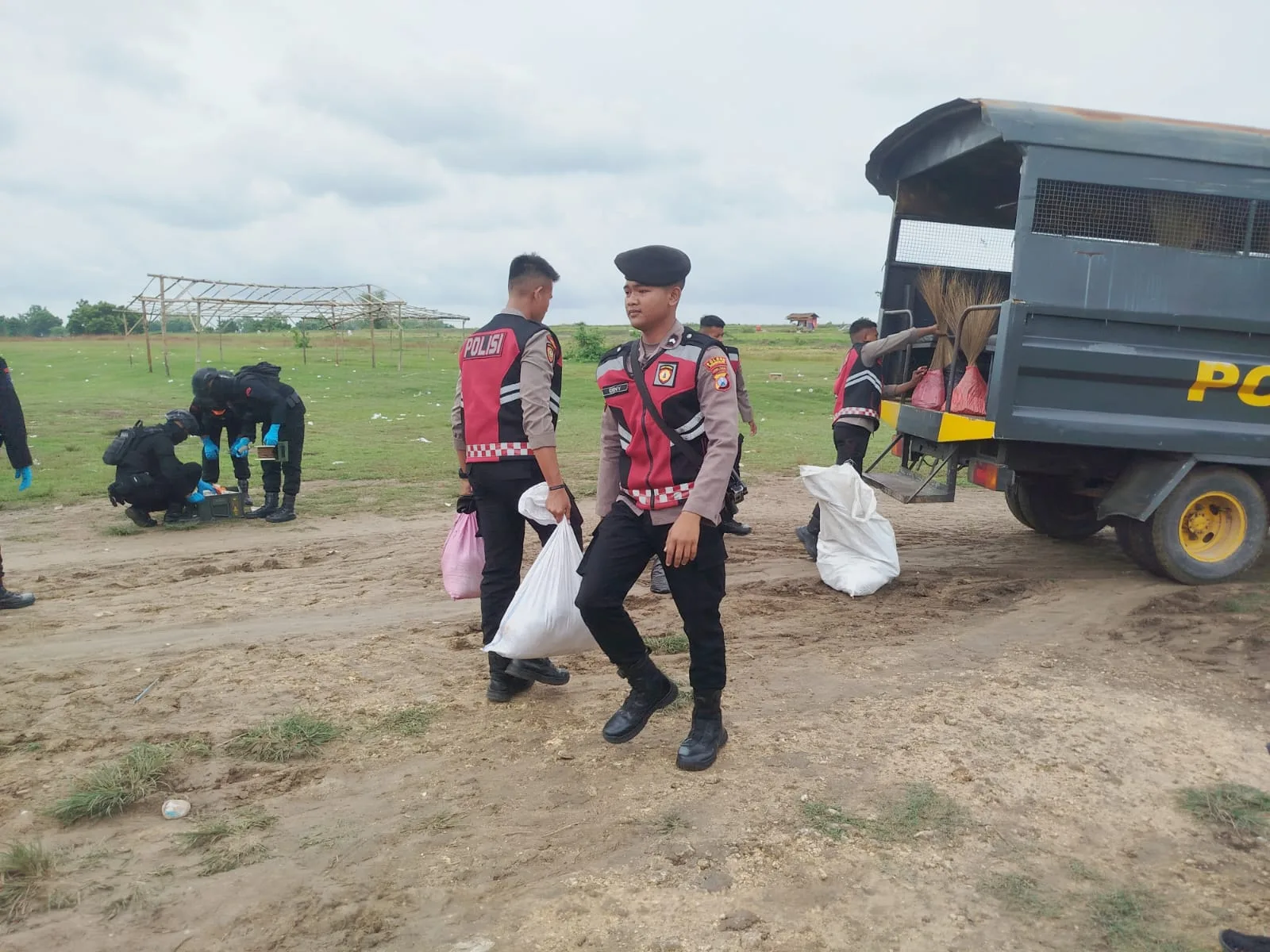 Proses pemusnahan berlangsung di lahan kosong di Desa Pandabah, Kecamatan Kamal, Bangkalan, dengan pengamanan dari tim Gegana Polda Jatim.