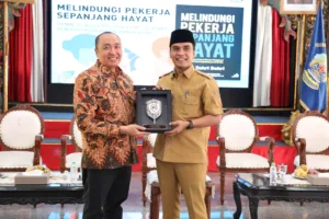 Politik & PemerintahanBangkalanBangkalan Dorong Kesadaran Jaminan Sosial Lewat Bedah Buku Melindungi Pekerja Sepanjang Hayat Wahyu Di 25/08/2025Bangkalan – Suasana Pendopo Agung Bangkalan, Senin (25/8/2025), berubah menjadi ruang dialog publik ketika buku “Melindungi Pekerja Sepanjang Hayat” karya Ketua Dewan Pengawas BPJS Ketenagakerjaan,