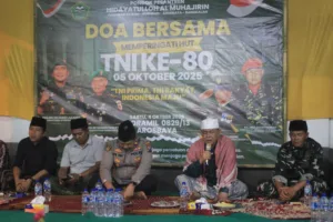 Bangkalan – Suasana khidmat menyelimuti acara doa bersama yang digelar di Koramil Arosbaya, Sabtu (5/10). Kegiatan ini merupakan inisiatif dari Pengasuh Pondok Pesantren Hidayatulloh Al-Muhajirin,